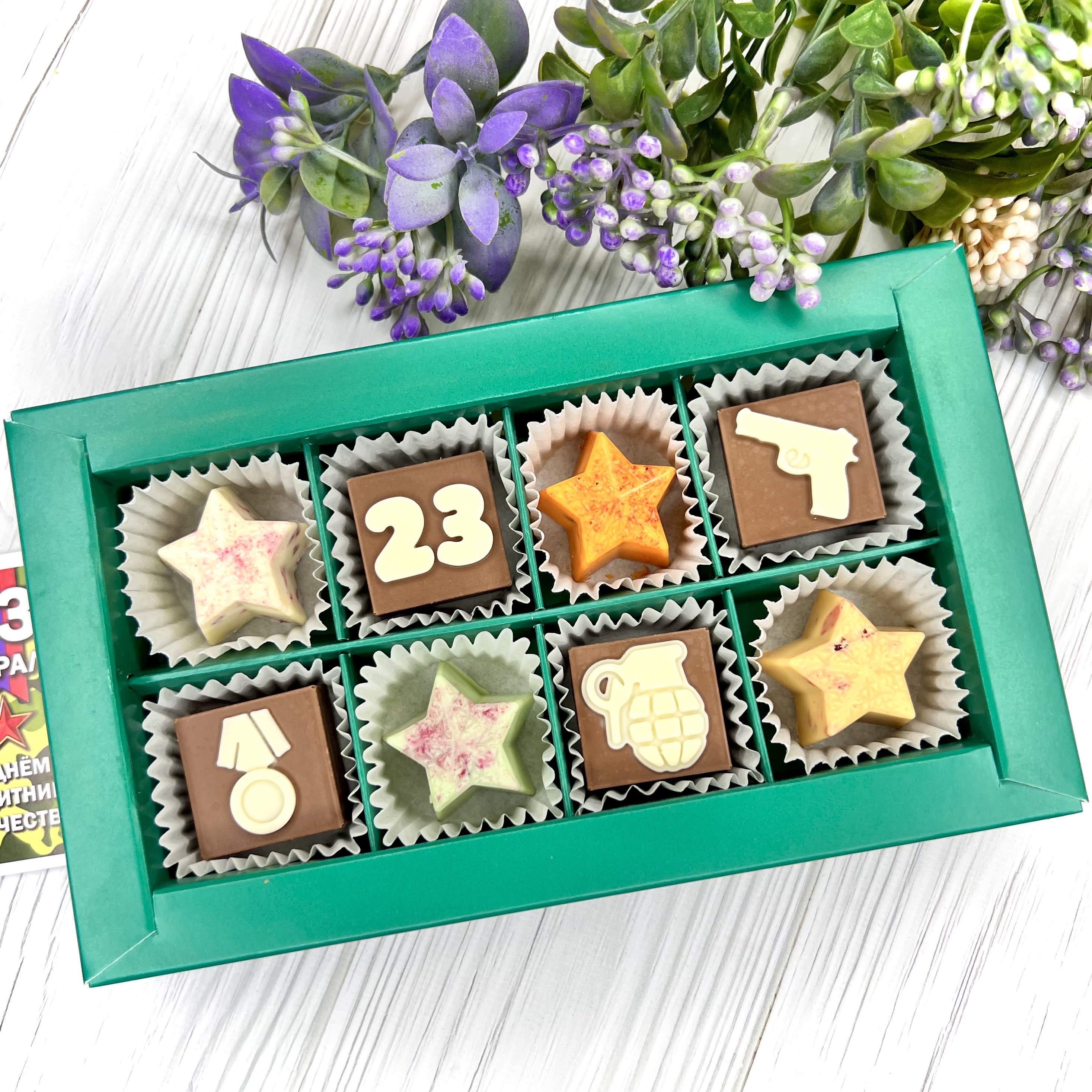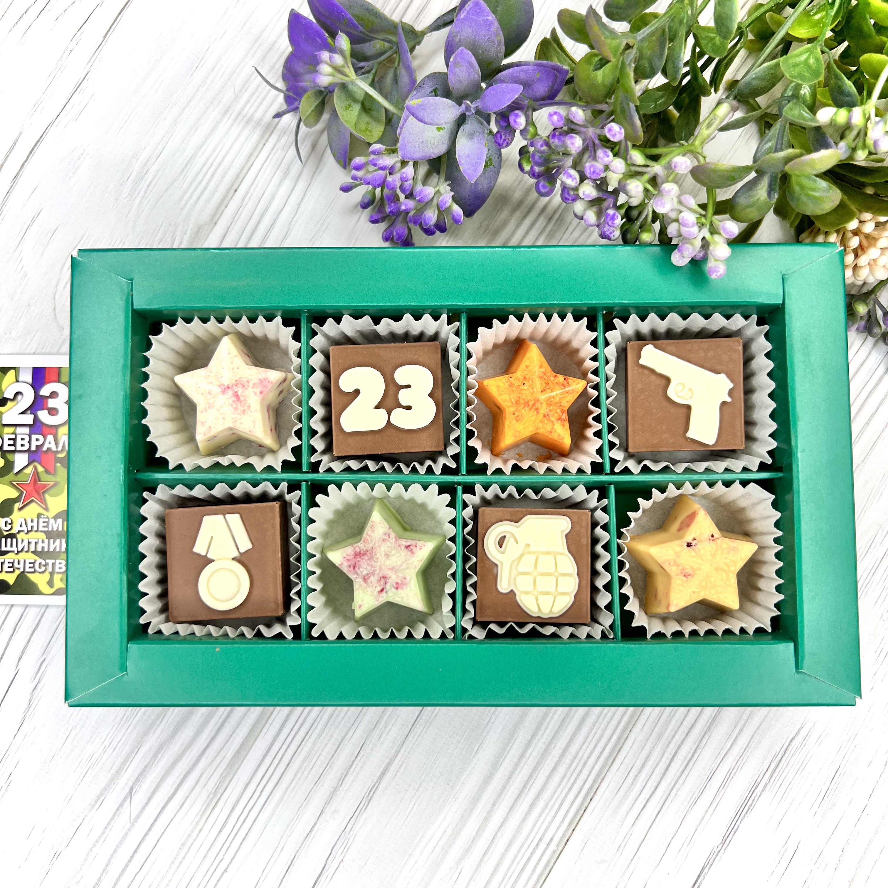 Шоколадный набор "23 февраля: 8 конфет ручной работы" - вкусный и оригинальный подарок на День Защитника Отечества.