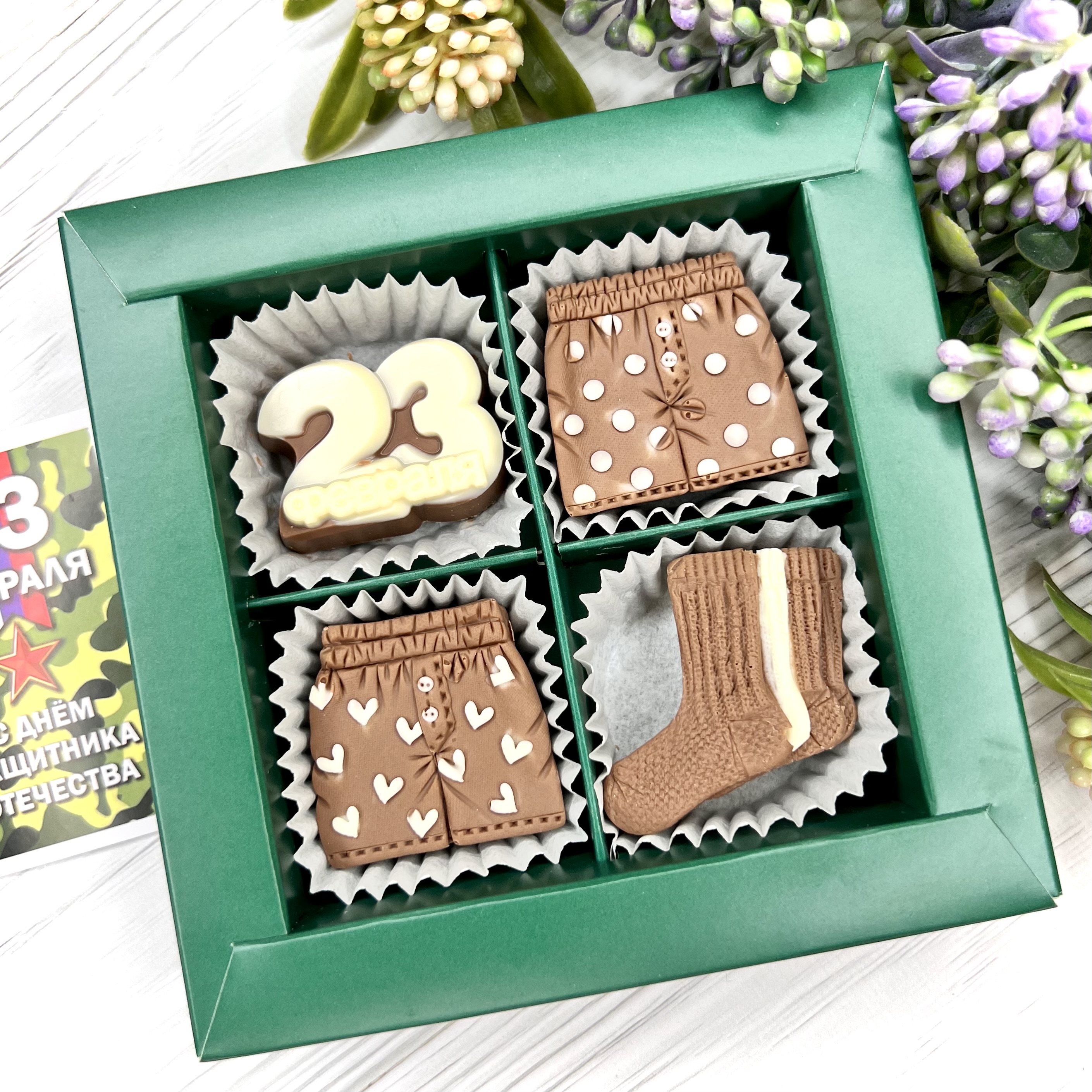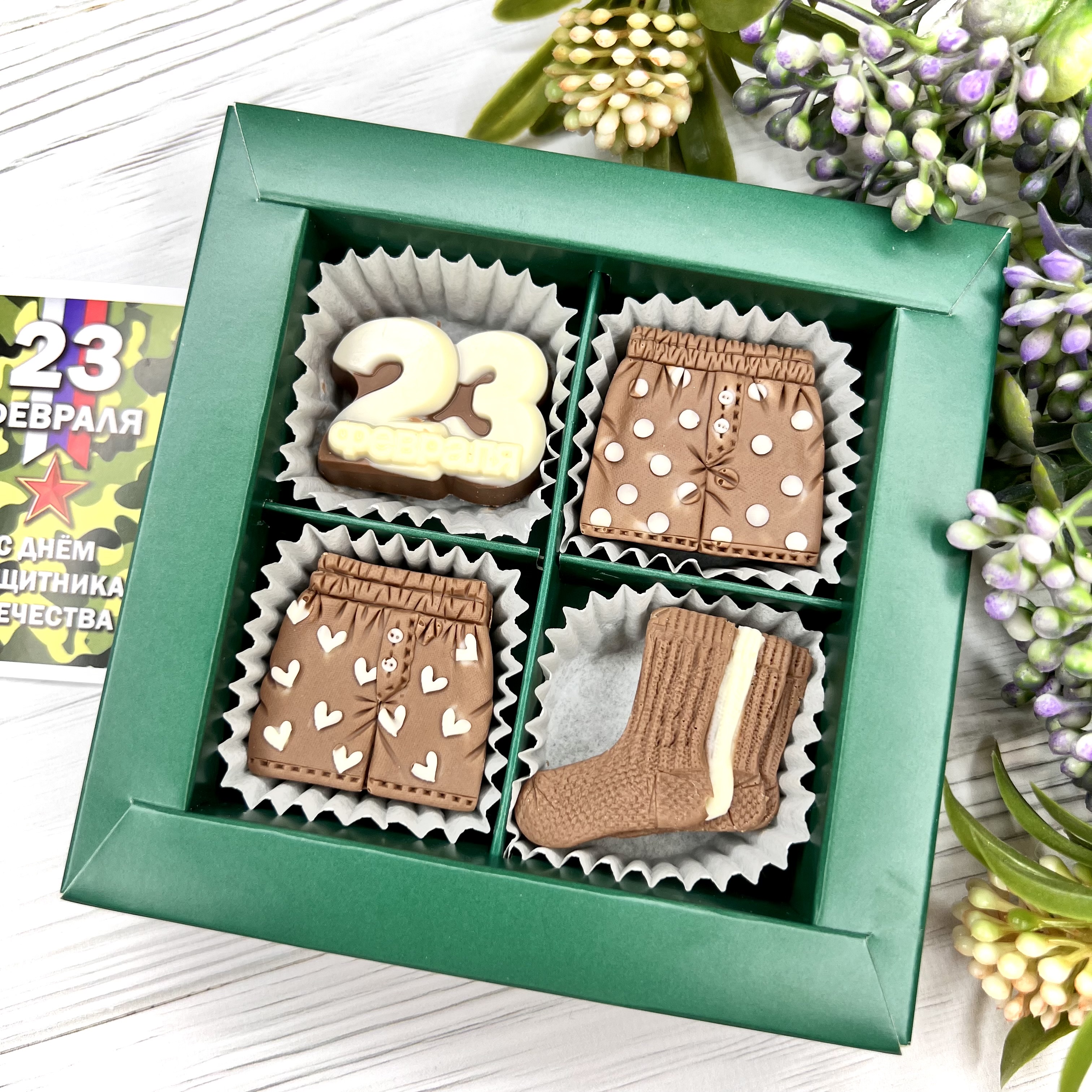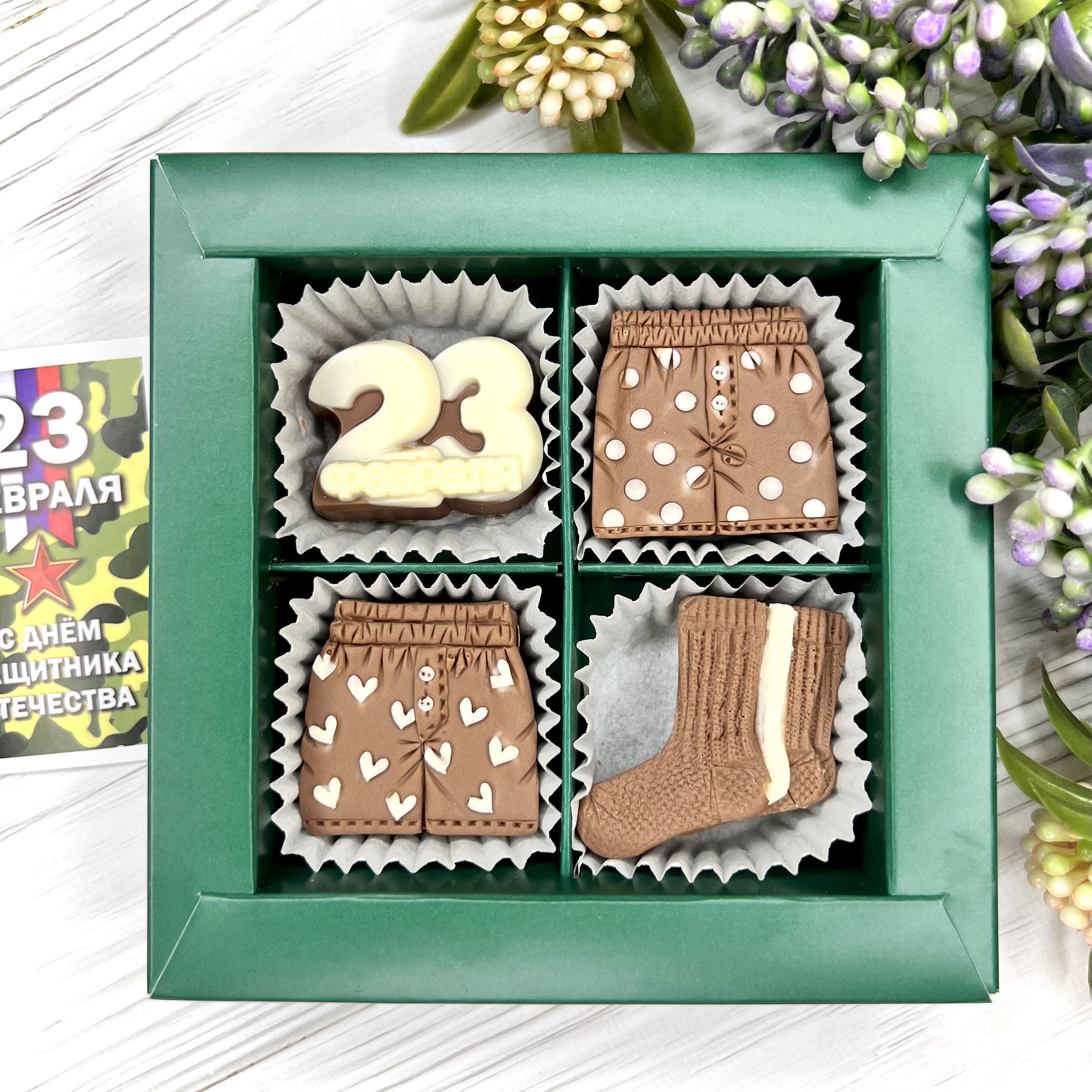 Шоколадный набор "23 февраля: носки и трусы": 4 конфеты ручной работы - оригинальный, достойный и поистине вкусный подарок настоящему мужчине.