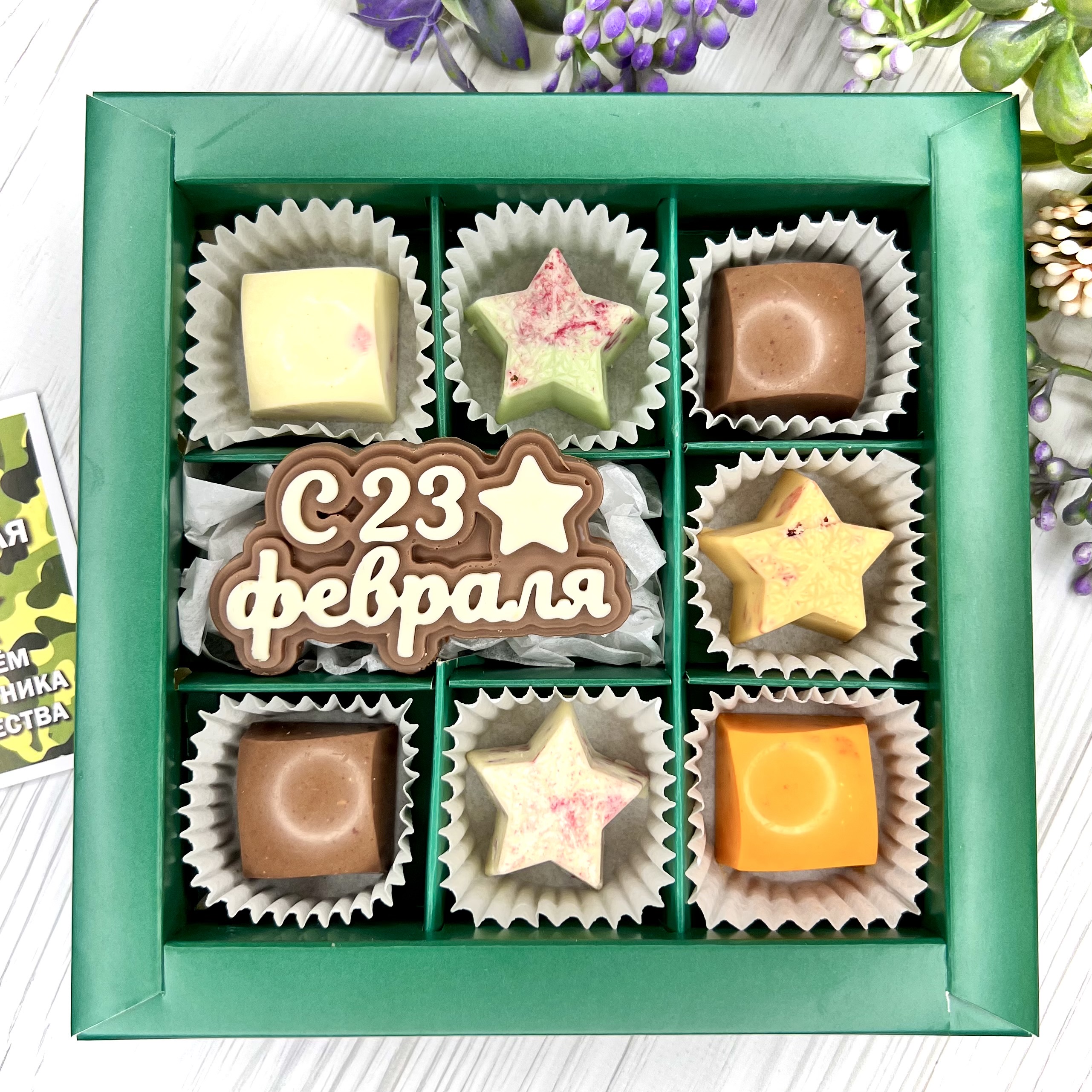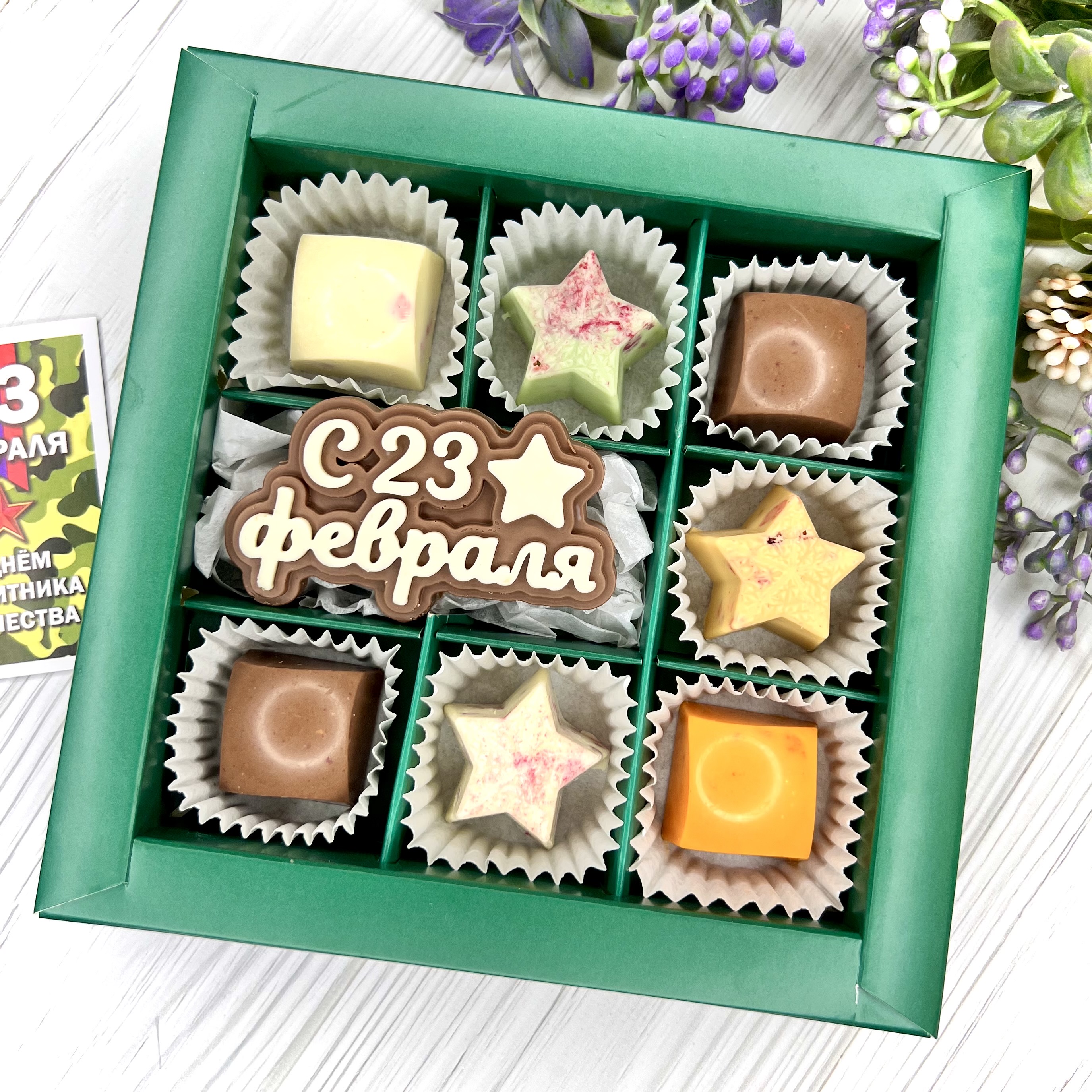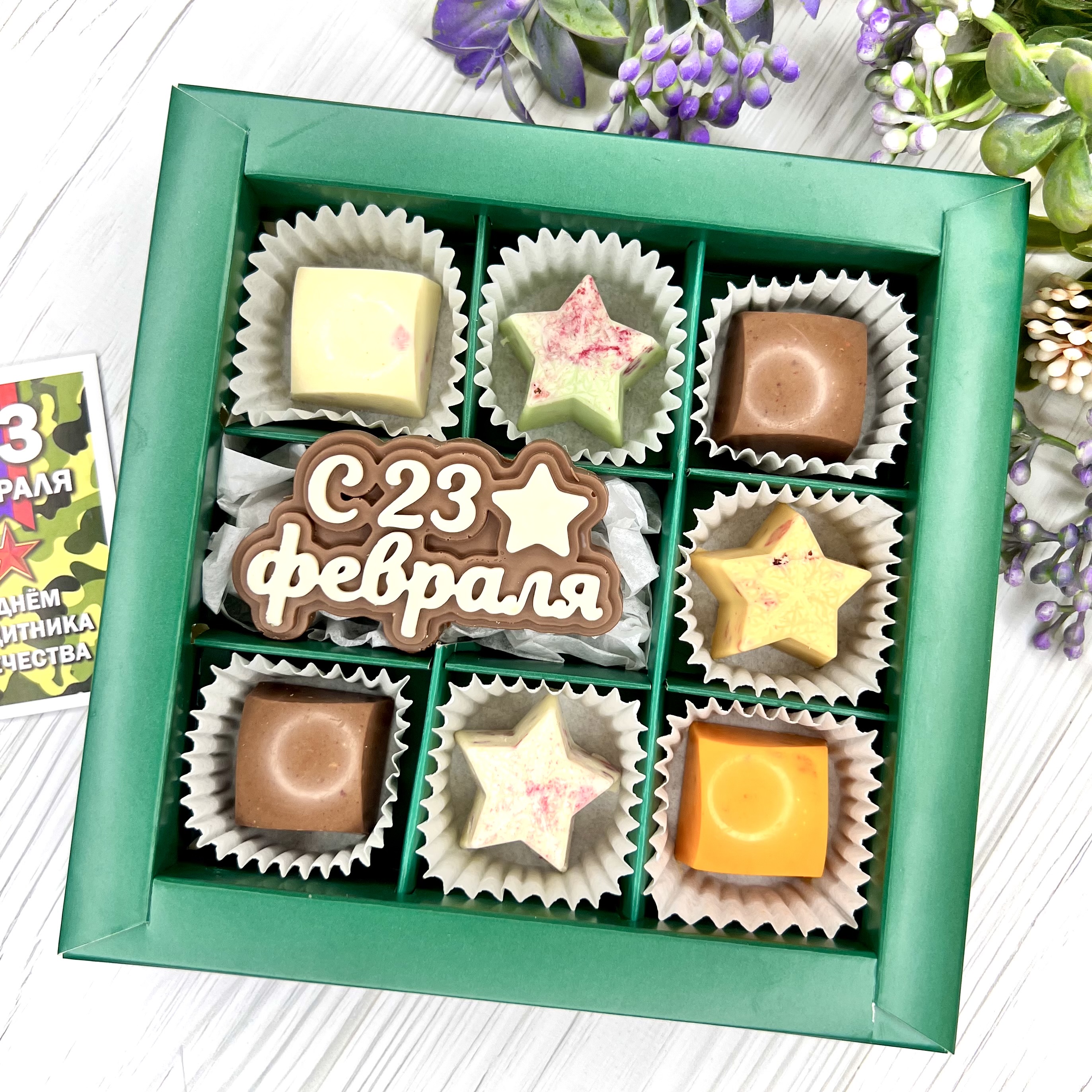 Шоколадный набор "23 февраля": шоколадка и 7 конфет ручной работы - вкусный и оригинальный подарок на День Защитника Отечества.