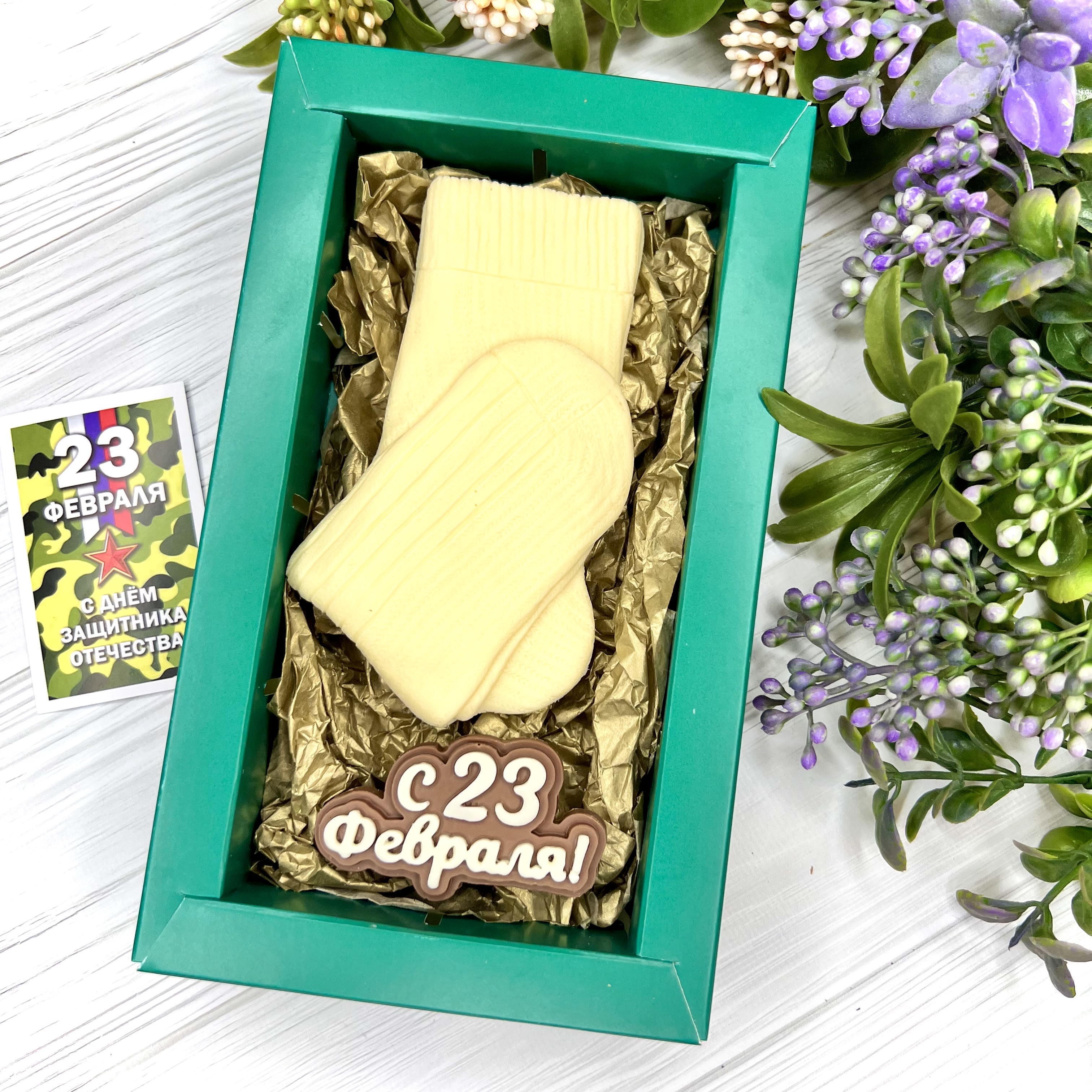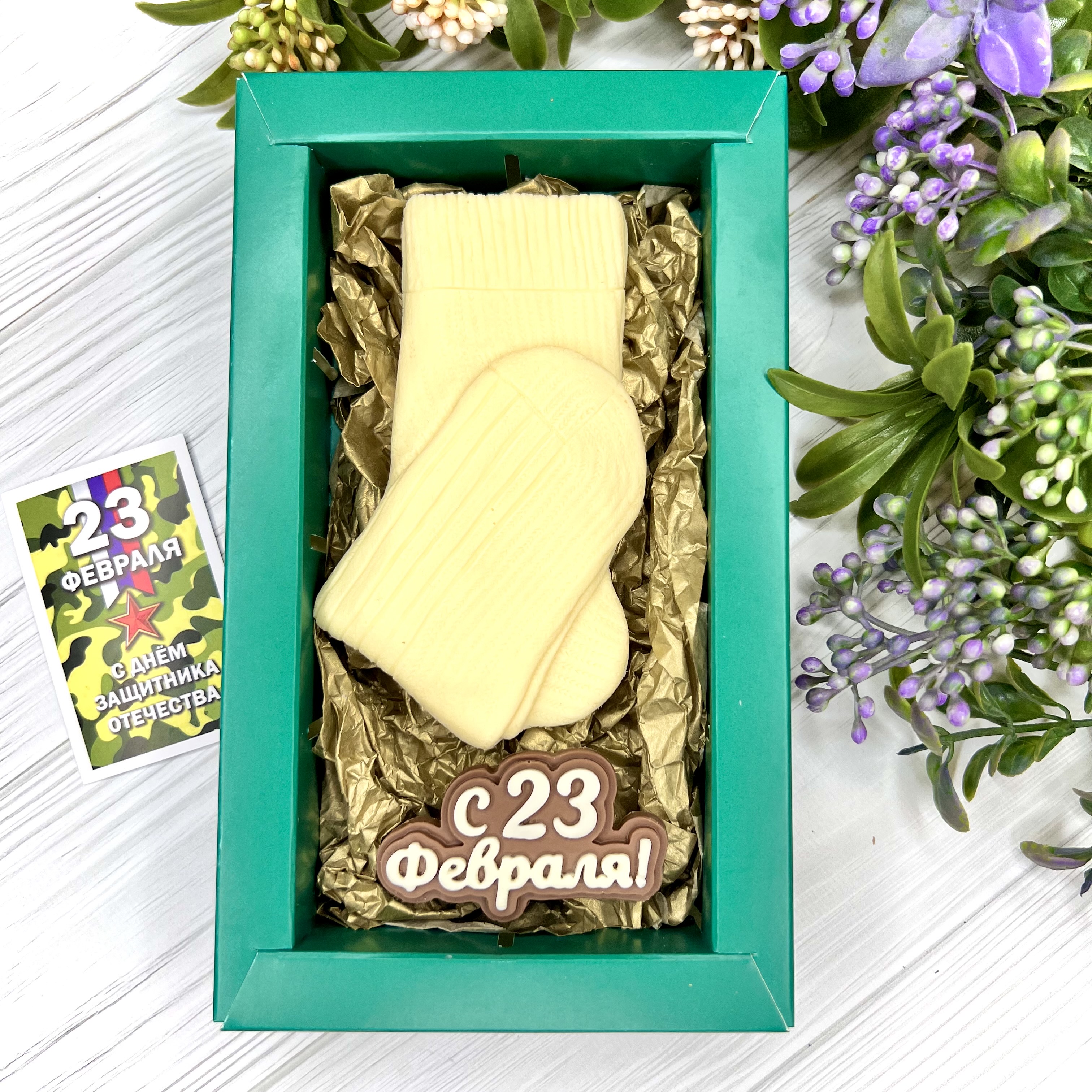 Традиционный подарок мужчинам на 23 февраля – носки – воплотились в этом наборе в виде шоколадки! Эти носки не потеряются и не порвутся, а будут съедены приятно вспоминая подарившего!