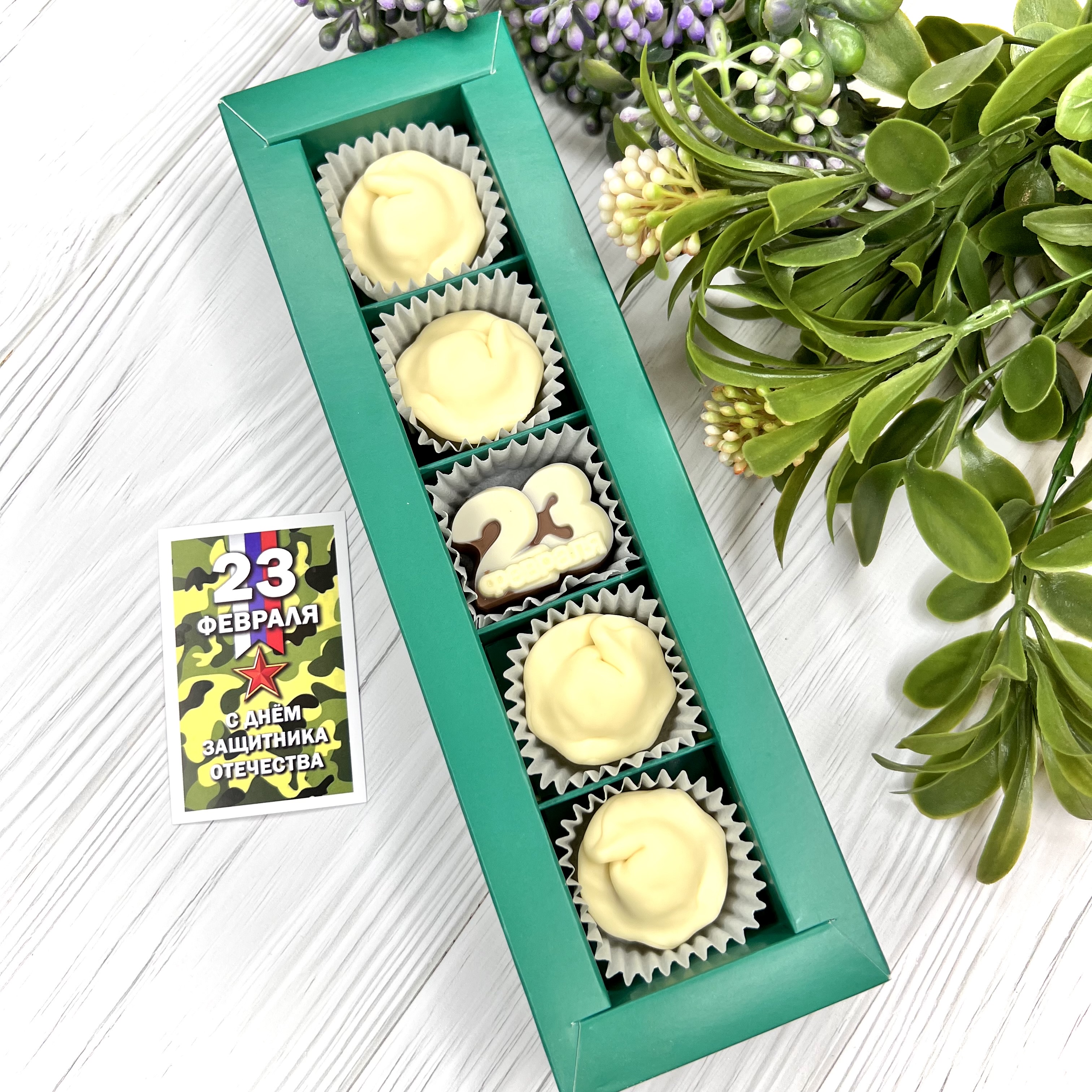 Шоколадный набор "23 февраля: пельмени": 5 конфет ручной работы- оригинальный, достойный и поистине вкусный подарок на день защитника отечества.