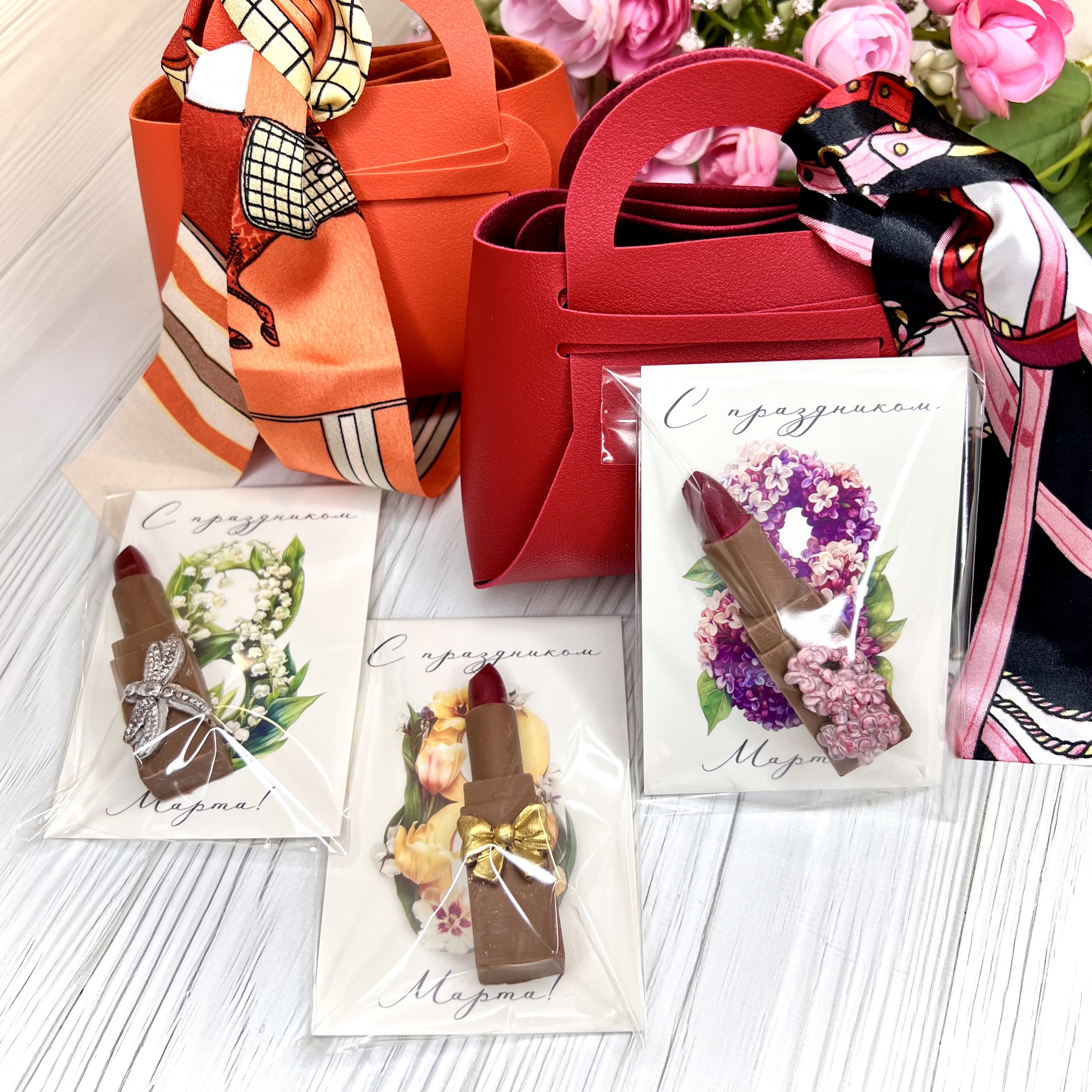 Шоколадный подарок «Помада» в сумочке - вкусный и оригинальный подарок из бельгийского шоколада на 8 марта.