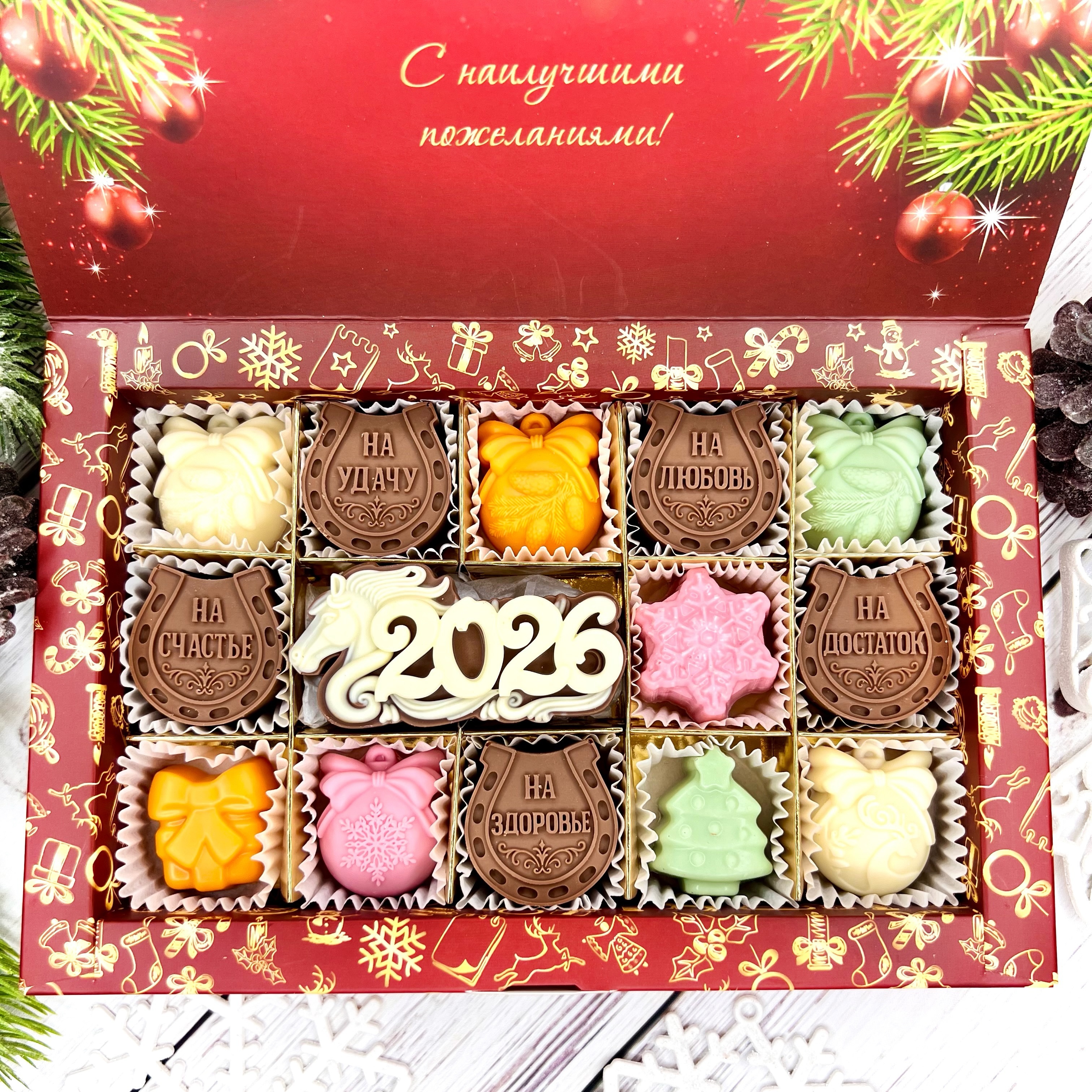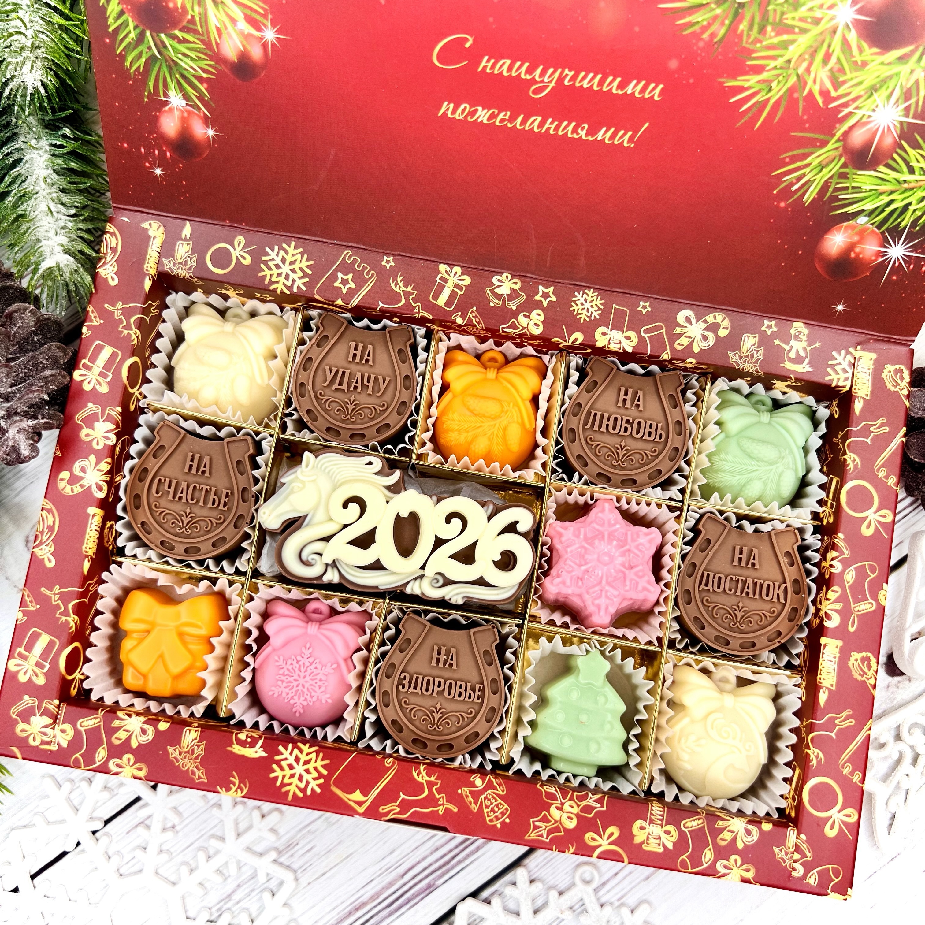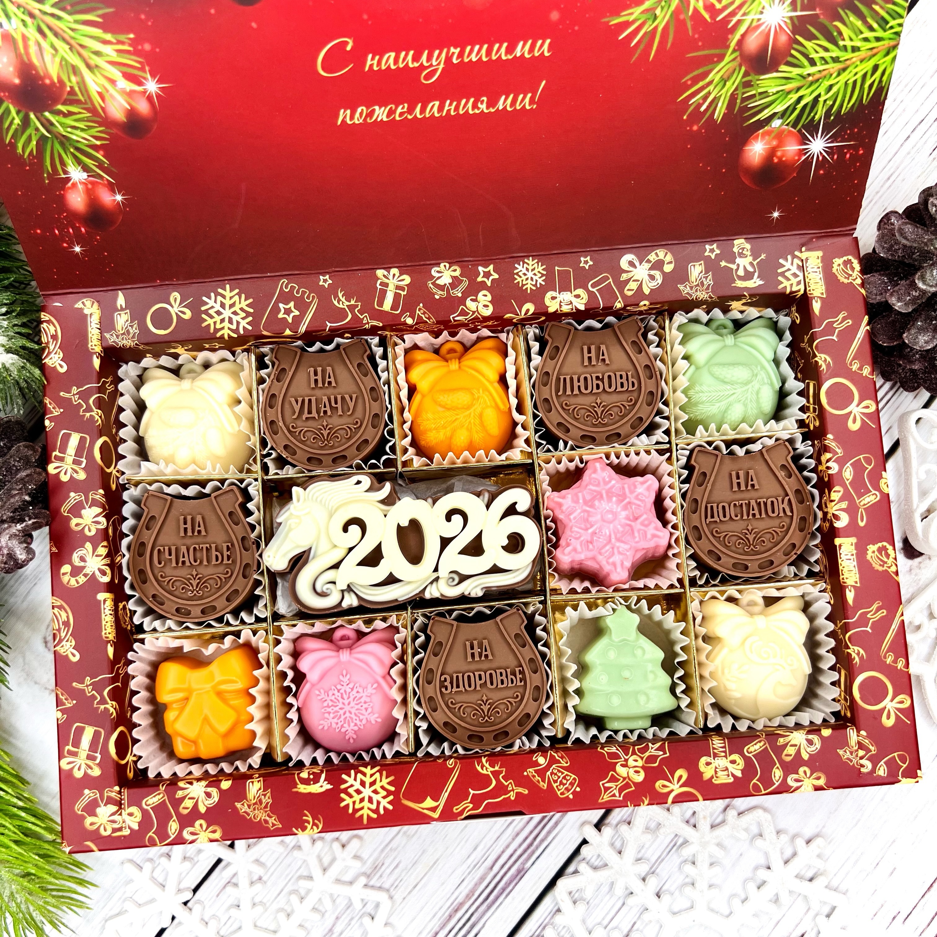 Новый 2026 год начинается со сладости и удачи! Шоколадка с символом 2026 года Лошади и конфеты-подковы - очаровательный талисман с добрыми пожеланиями! Идеальный подарок для тех, кому желаете самого лучшего в Новом 2026 году!