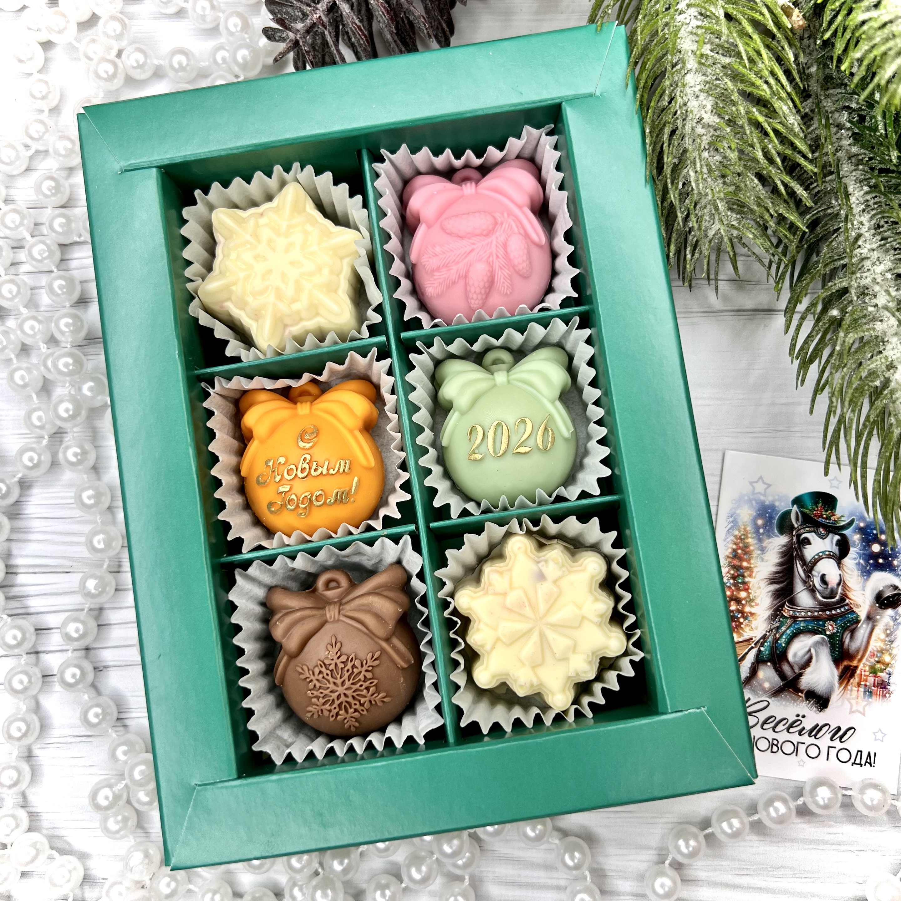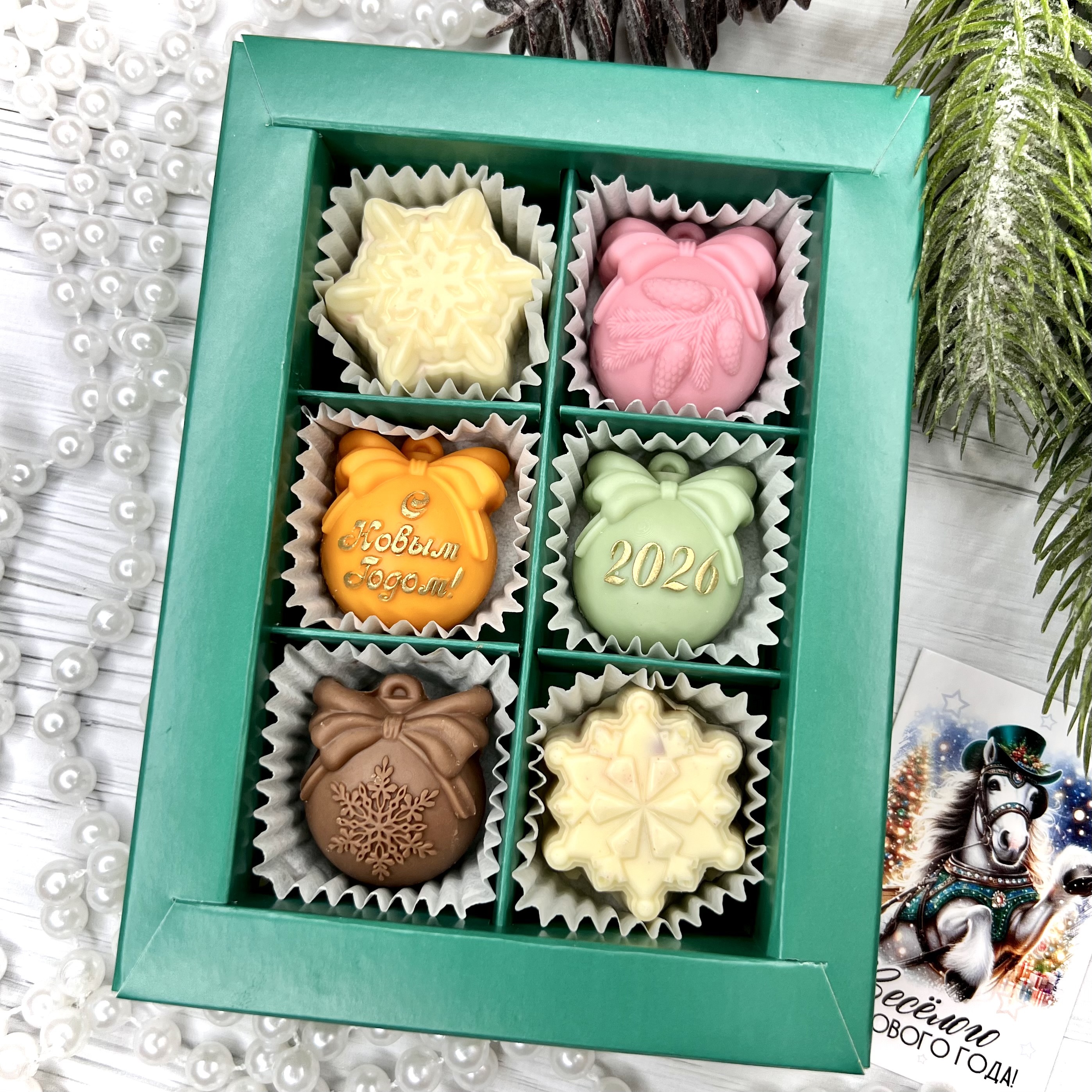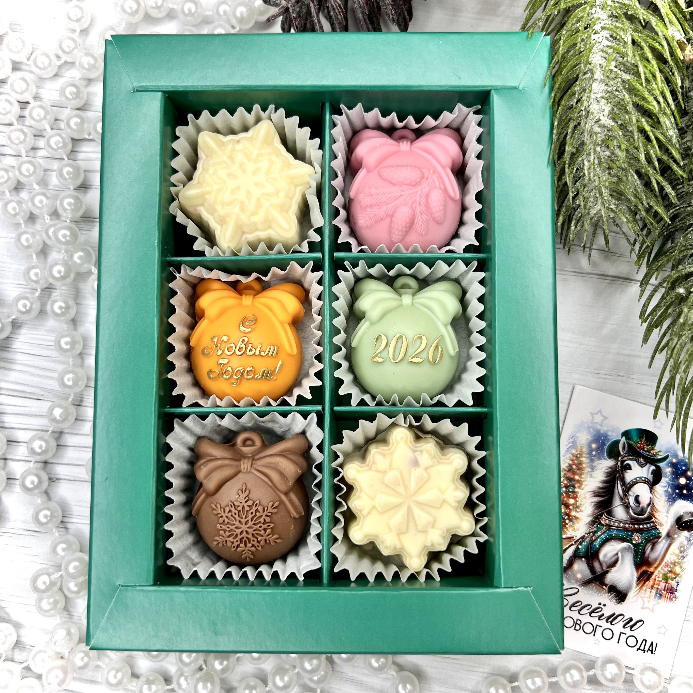 Шоколадный набор "С новым годом 2026": 6 конфет ручной работы - оригинальный, достойный и поистине вкусный подарок на Новый год 2026 из премиального бельгийского и швейцарского шоколада.