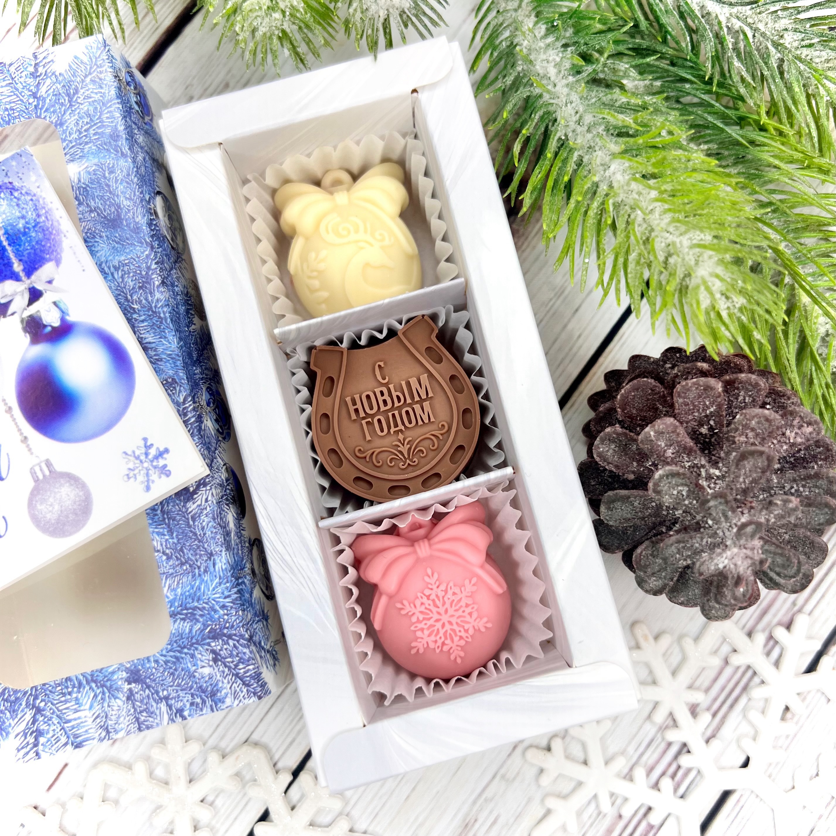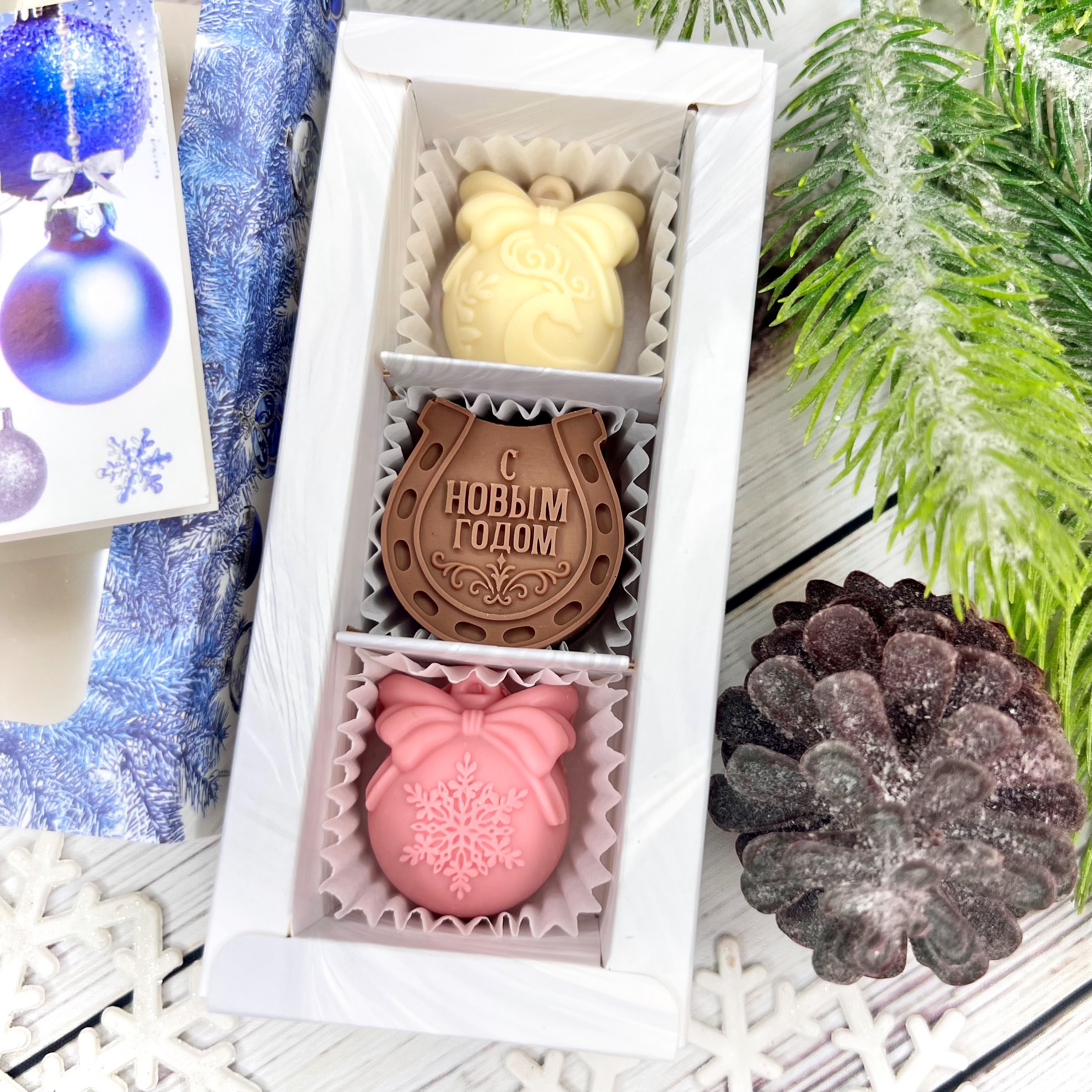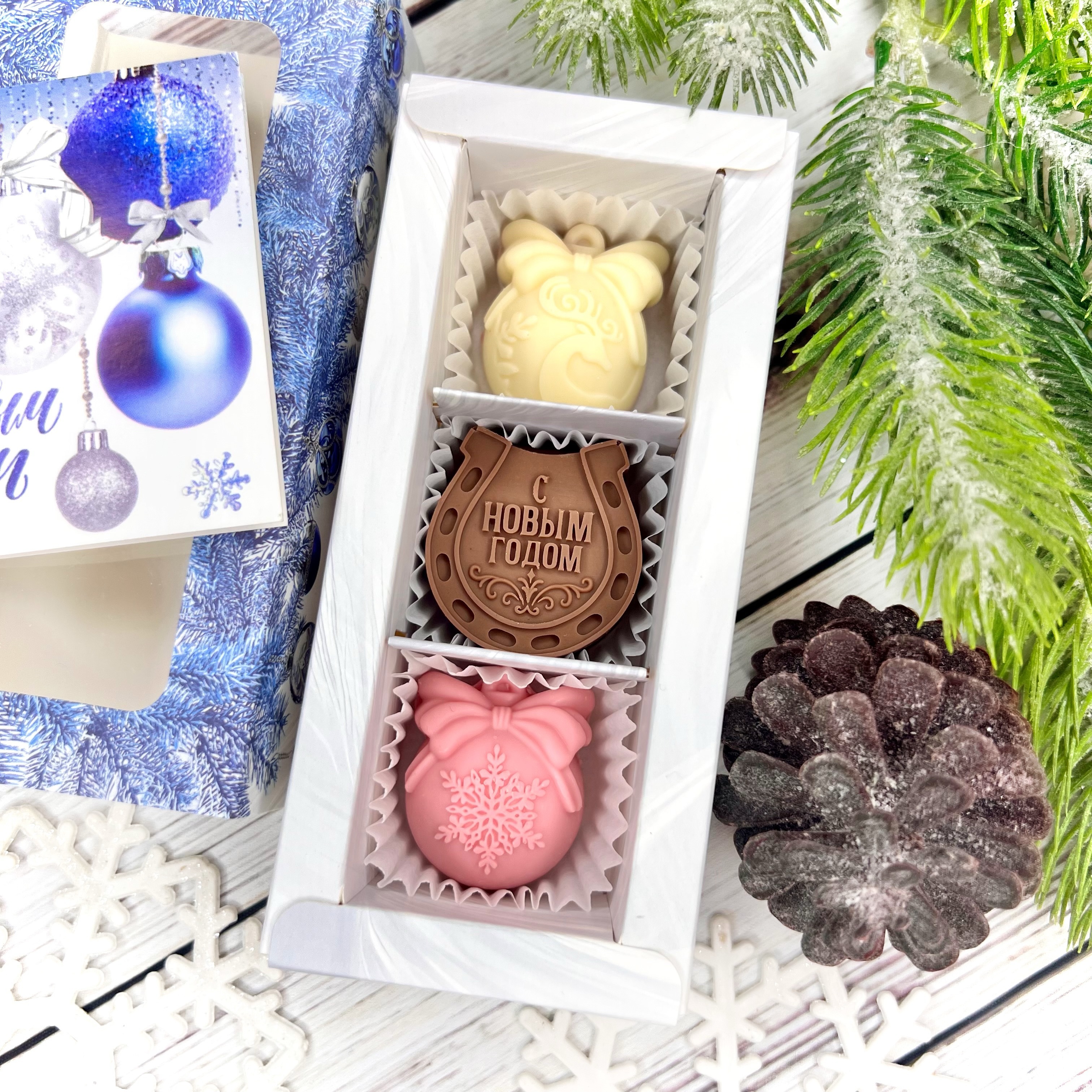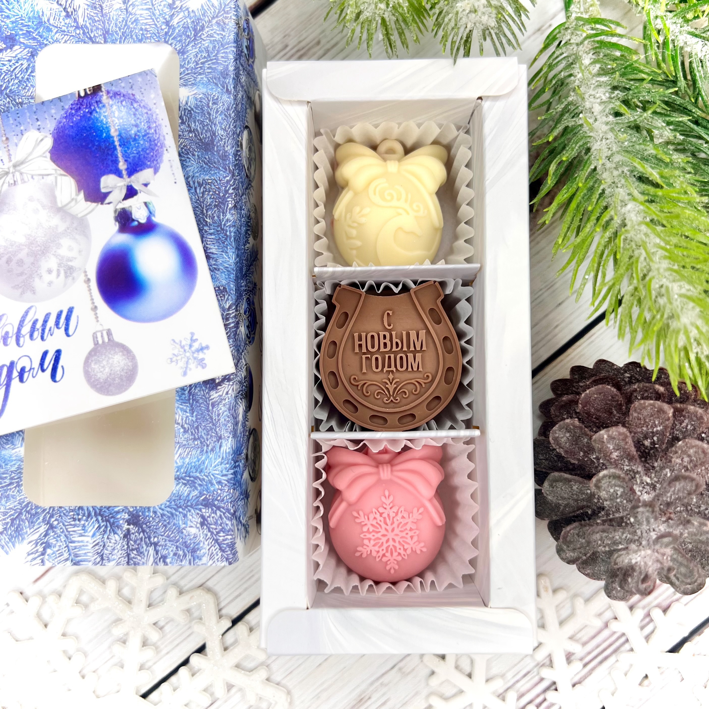 Шоколадный набор "С Новым годом. Подкова": 3 конфеты ручной работы - оригинальный, достойный и поистине вкусный подарок на Новый год 2026 из премиального бельгийского и швейцарского шоколада.