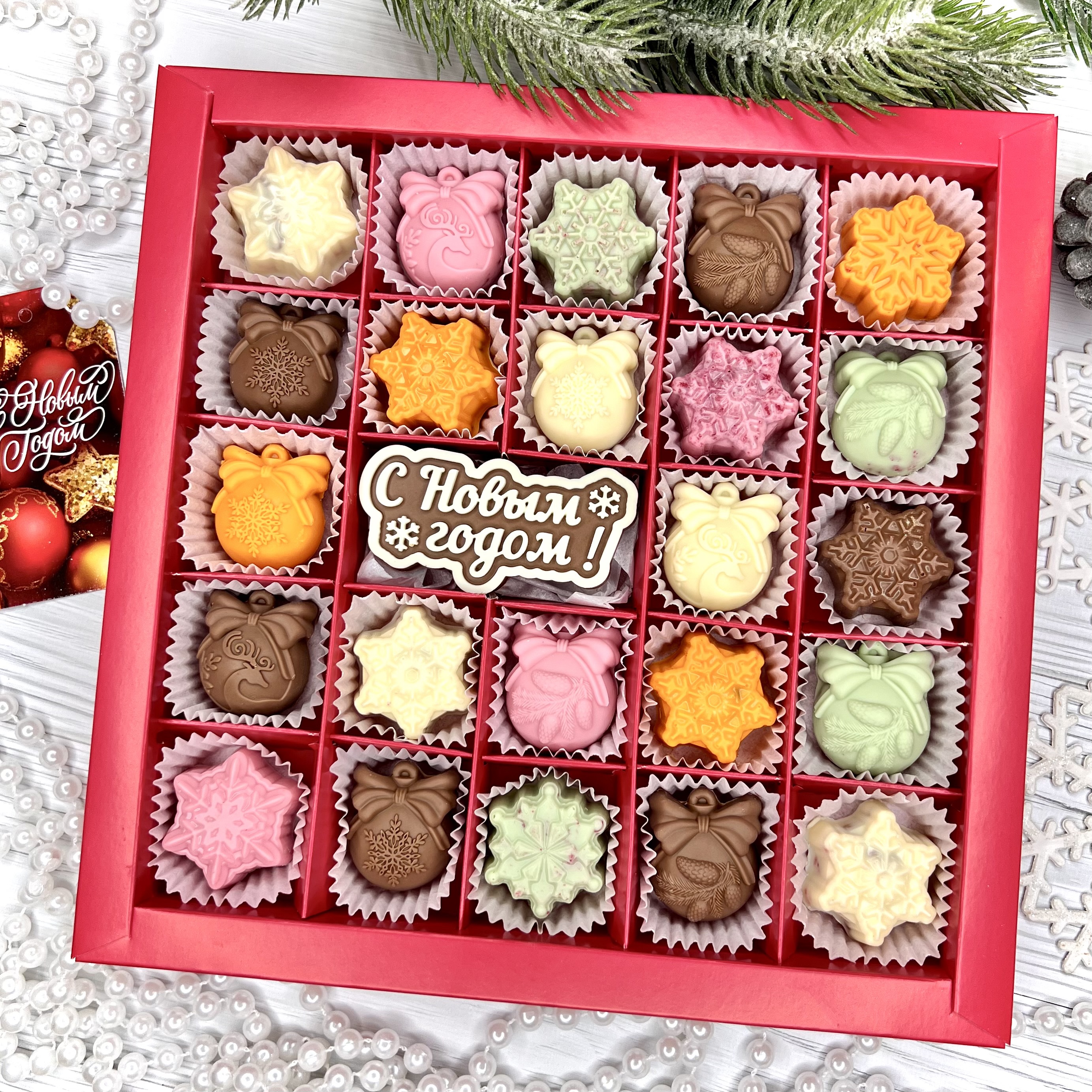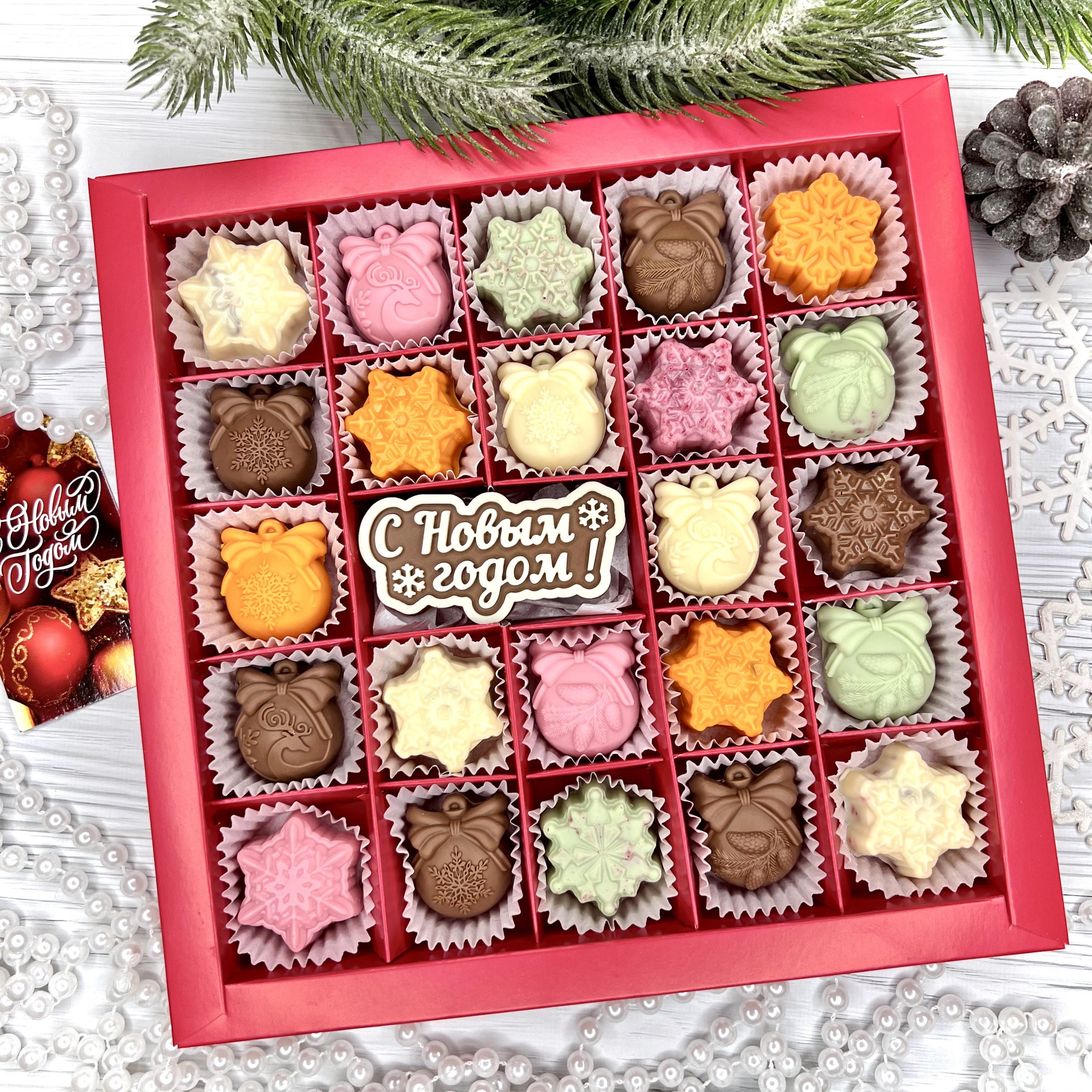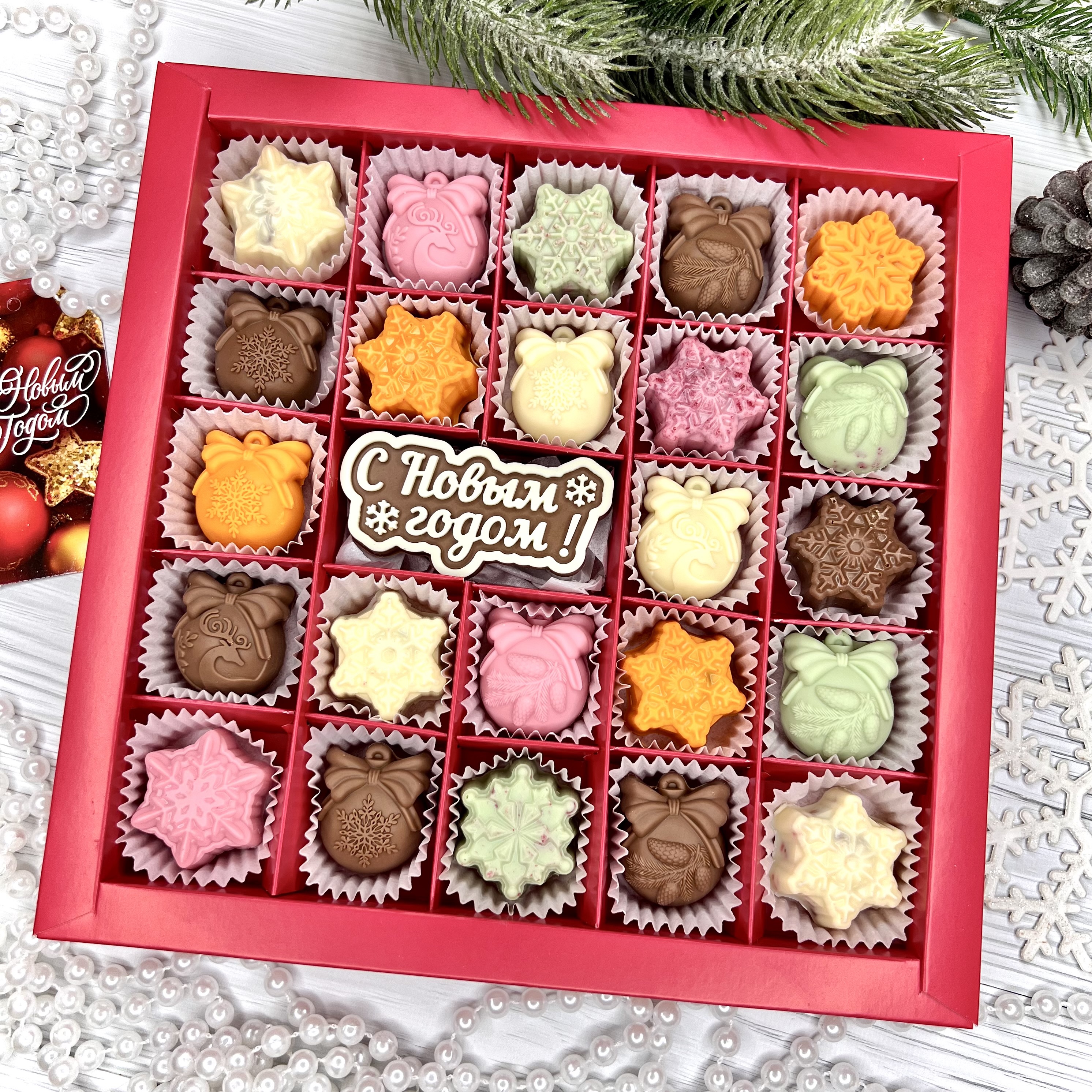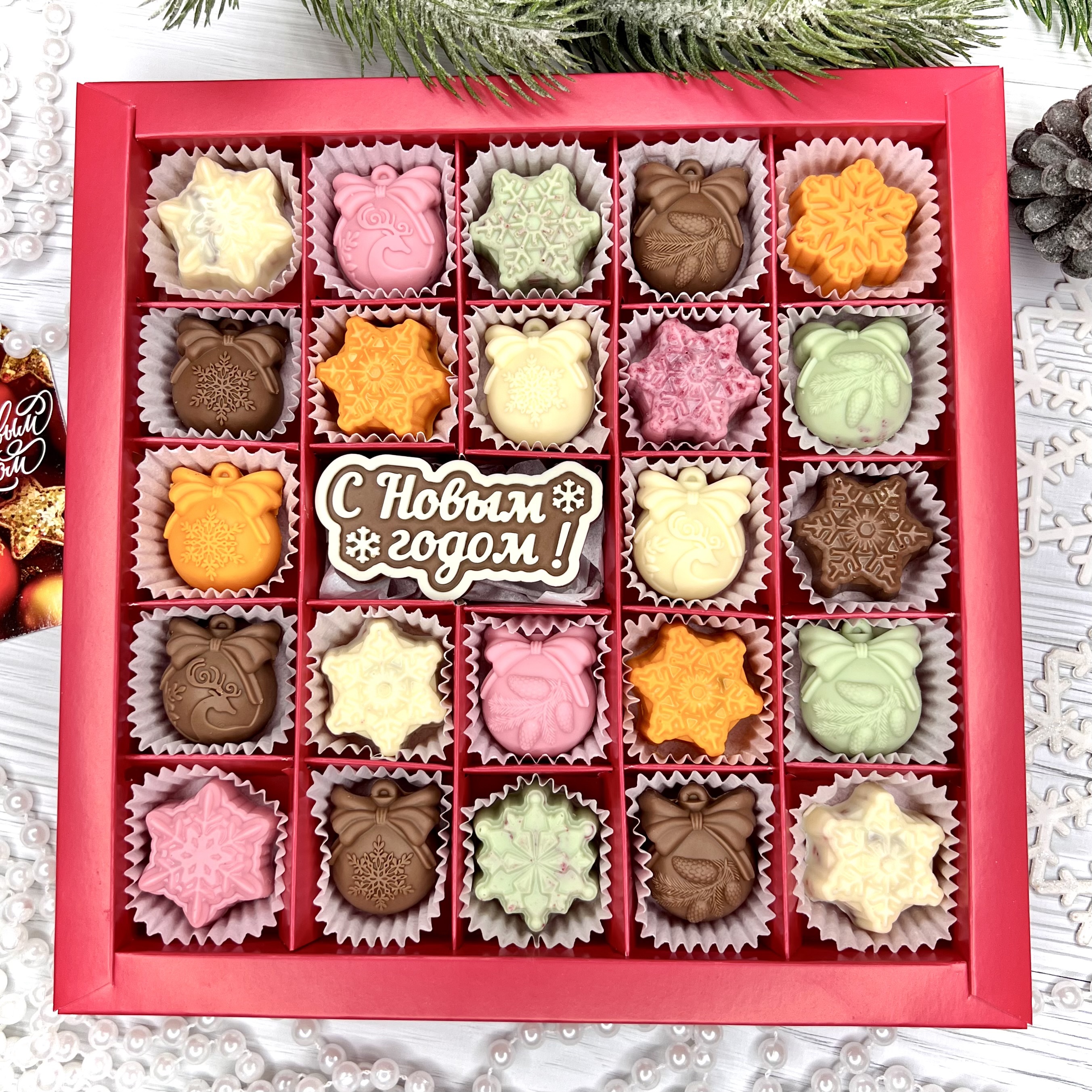 Шоколадный набор "С Новым годом": шоколадка-надпись и 23 конфеты ручной работы - оригинальный, достойный и поистине вкусный подарок на Новый год из премиального бельгийского и швейцарского шоколада.