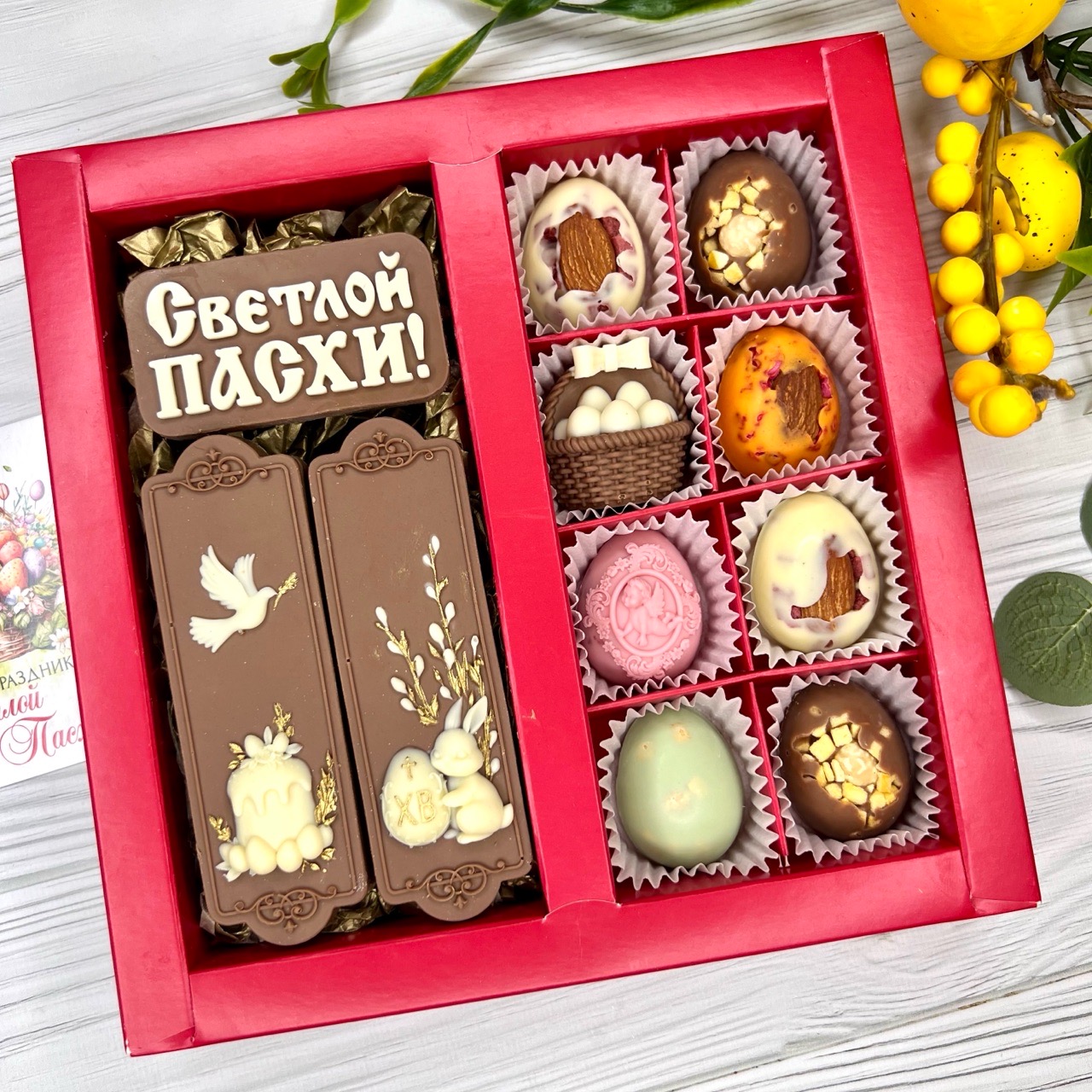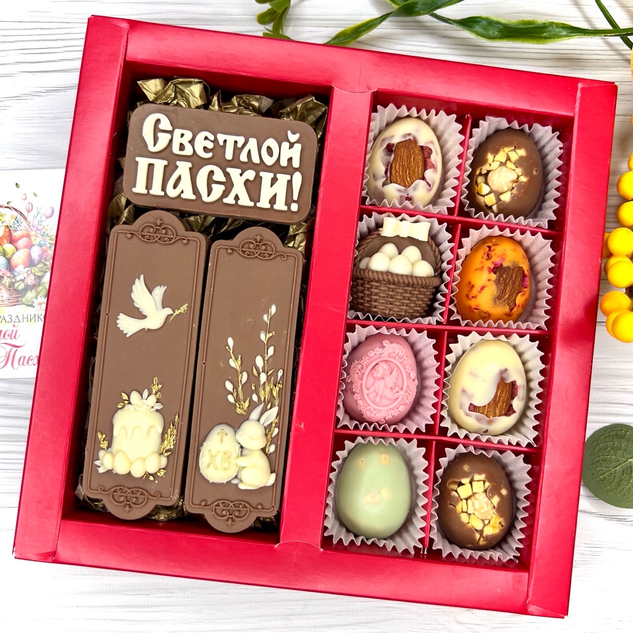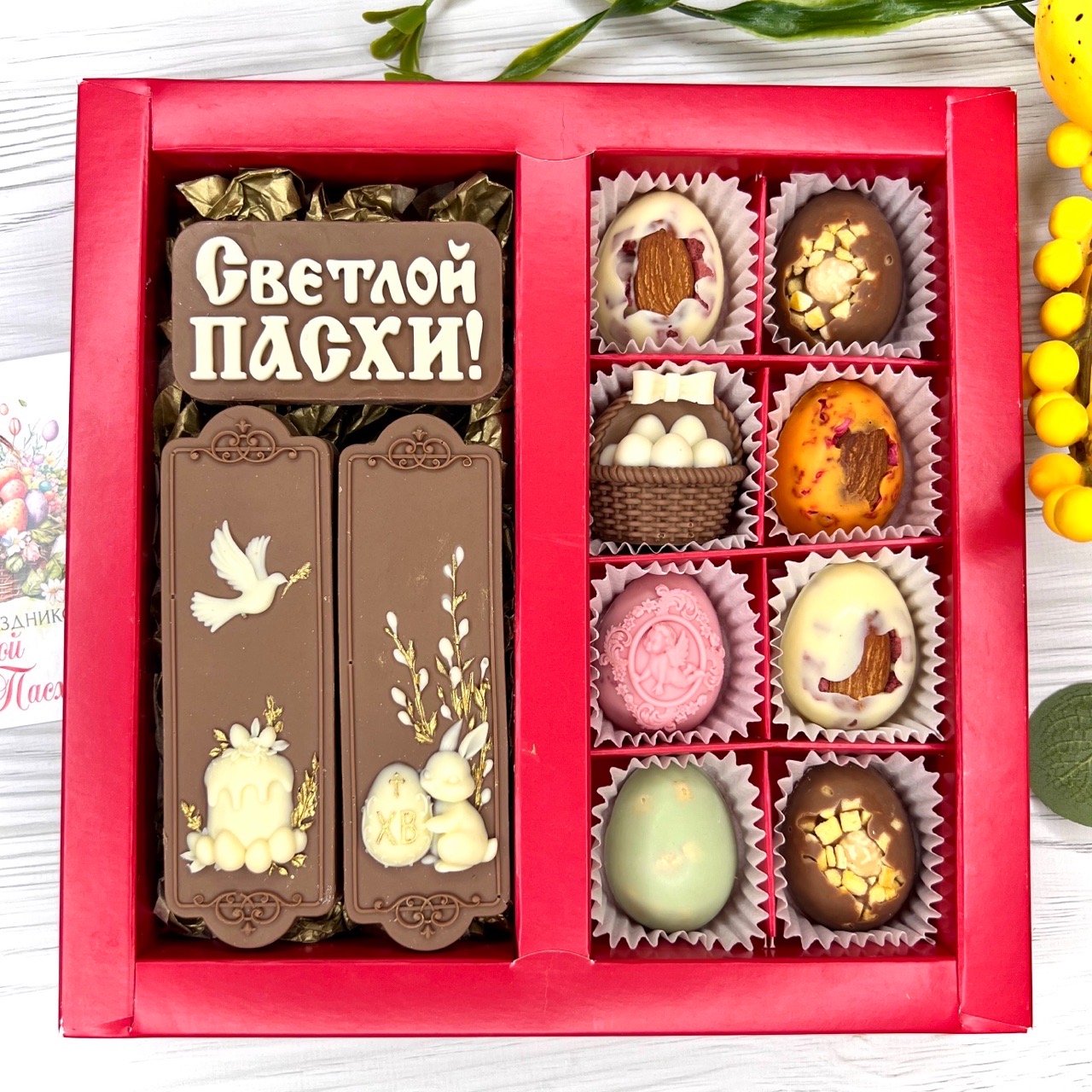 Шоколадный набор "Светлой Пасхи": 3 шоколадки и 8 конфет ручной работы - вкусный и оригинальный подарок на Светлый Праздник Пасхи.