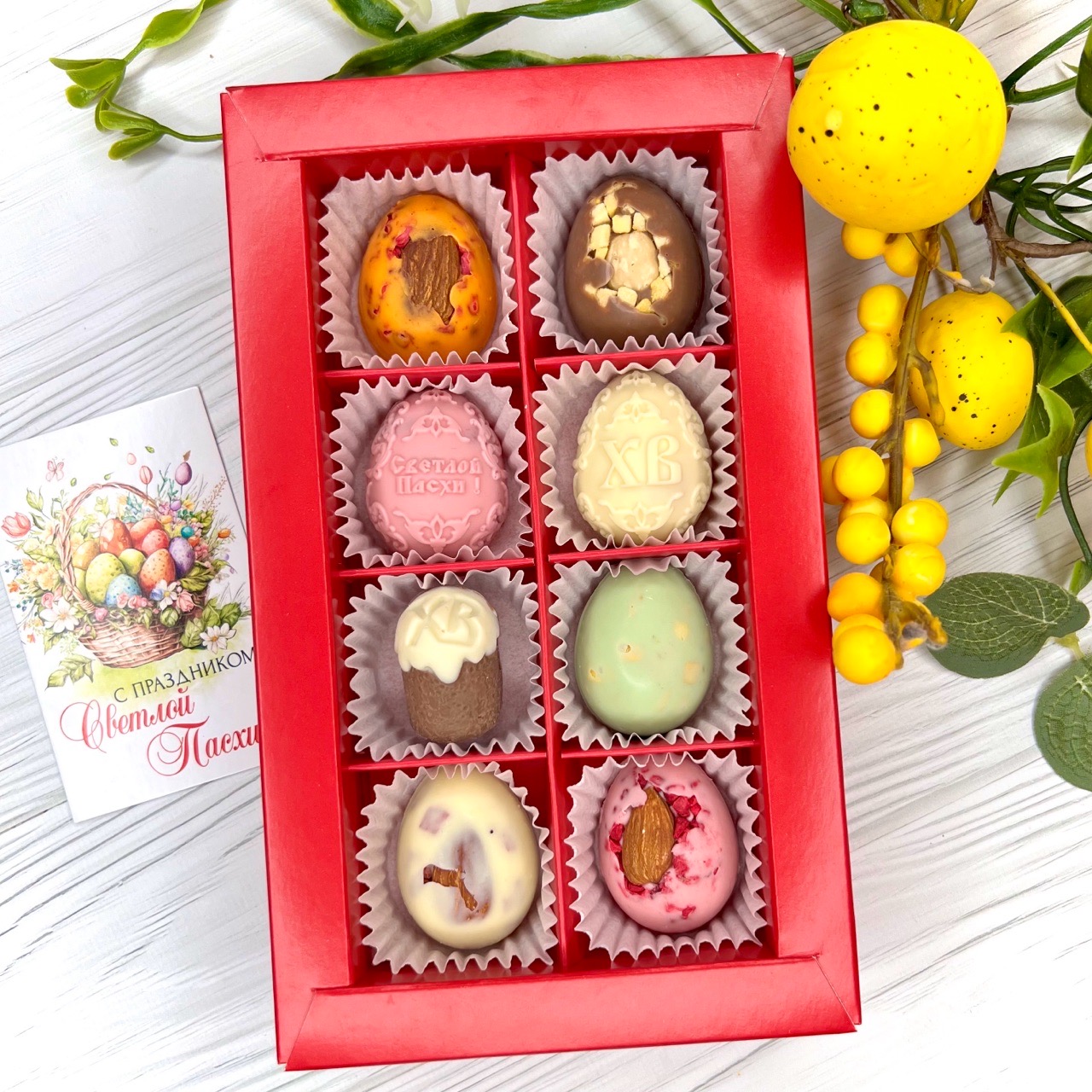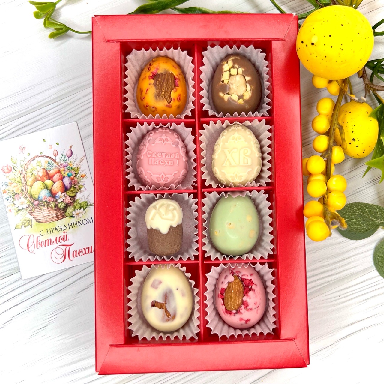 Шоколадный набор "Светлой Пасхи. ХВ": 8 конфет ручной работы - вкусный и оригинальный подарок на Светлый Праздник Пасхи.