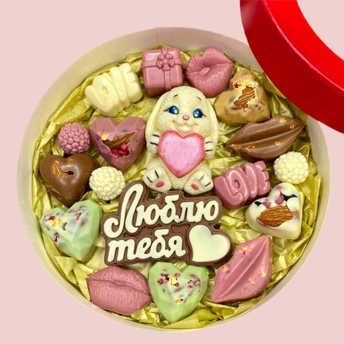 Шоколадный подарок "В добрый путь. Зайка с шариками": шоколадка-надпись и 3 конфеты ручной работы